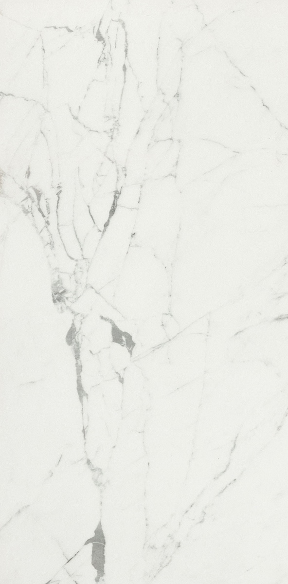 Крупноформатный керамогранит Caesar Statuario Venato Lucidato Lap. Ret. 120x278 (производства Италия) белого цвета, серый под камень, под мрамор для туалета, для фартука, для ступеней, для фасада, для коридора, для гостиной, для дома, для общественных помещений на стену, напольная с глянцевой поверхностью прямоугольной формы в стиле лофт, современный, классический, хай-тек, модерн, античный, дизайнерский 278х120 размер (мм) - 2780x1200 толщиной 6 мм.